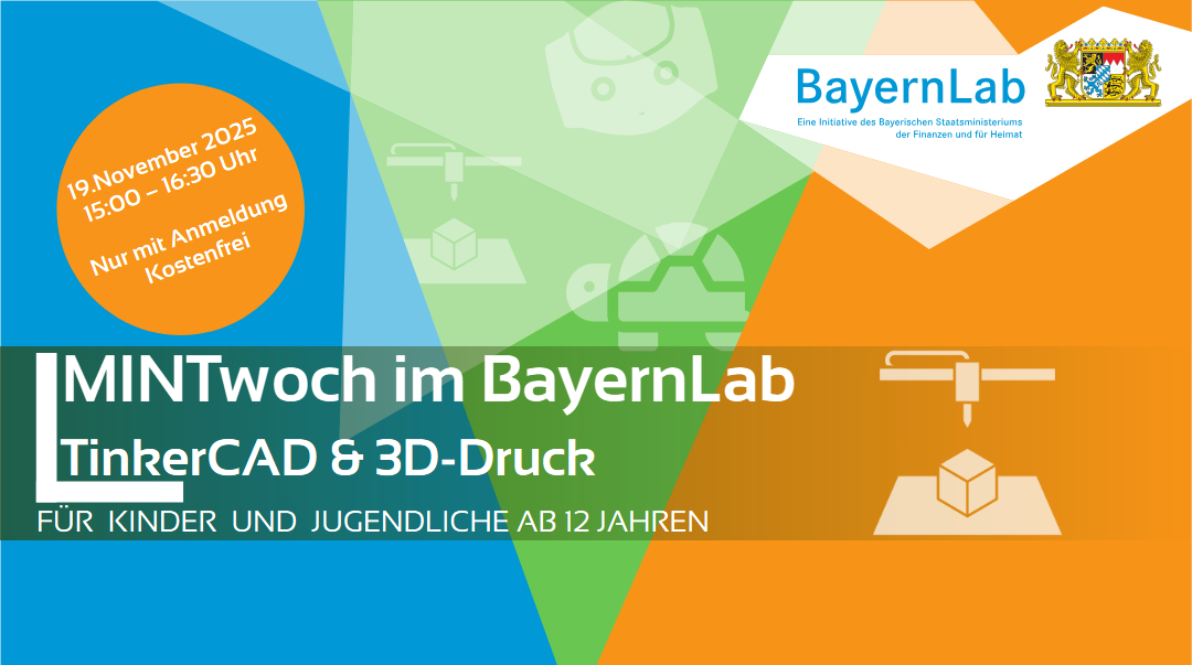 Das BayernLab Neustadt a.d.Aisch lädt am Mittwoch, den 19.11.2025, um 15:00 Uhr zu einem kostenfreien Kurs über 3D-Konstruktion und 3D-Druck ein.