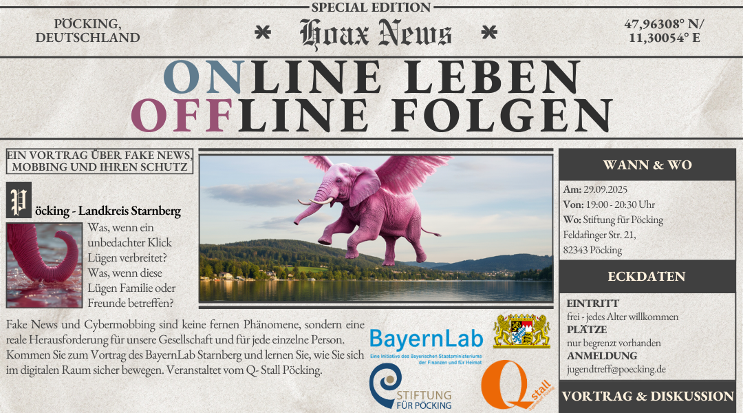 In der Stiftung Pöcking wird das BayernLab Starnberg einen Vortrag zum Thema Mobbing & Fake News geben.