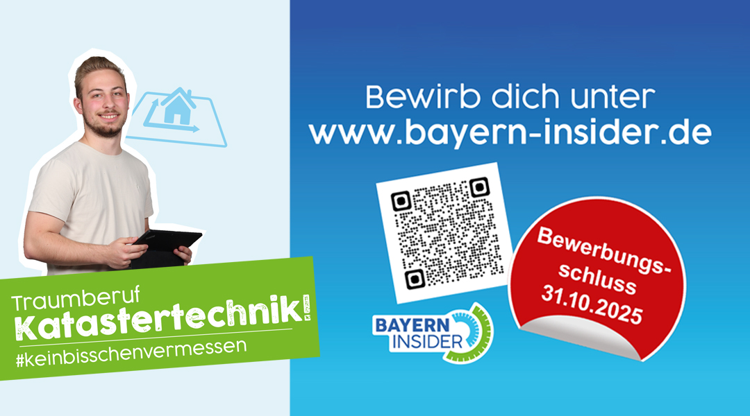 Nähere Infos zur Ausbildung finden Sie in der Stellenausschreibung zum Katastertechniker (PDF) und auf unsrer Karrierewebseite Bayern Insider (externer Link)